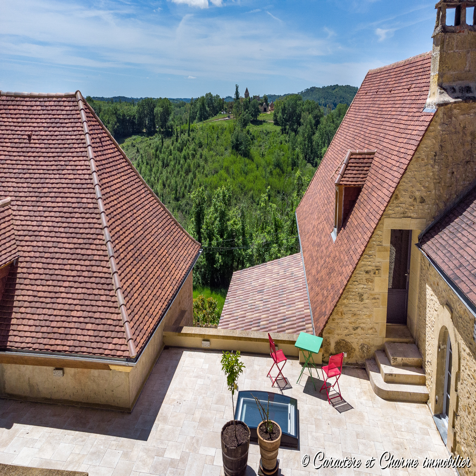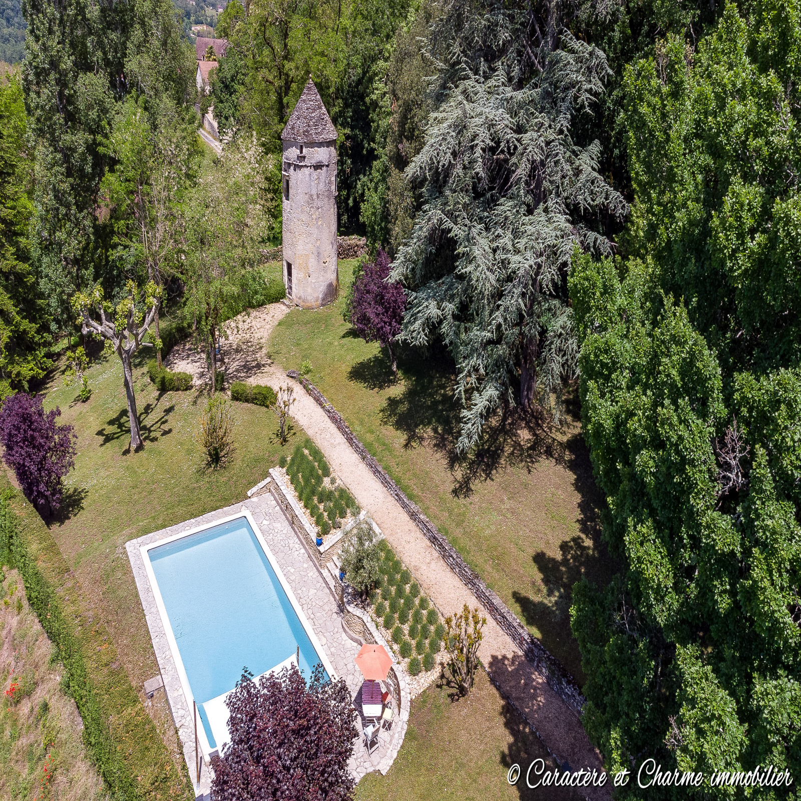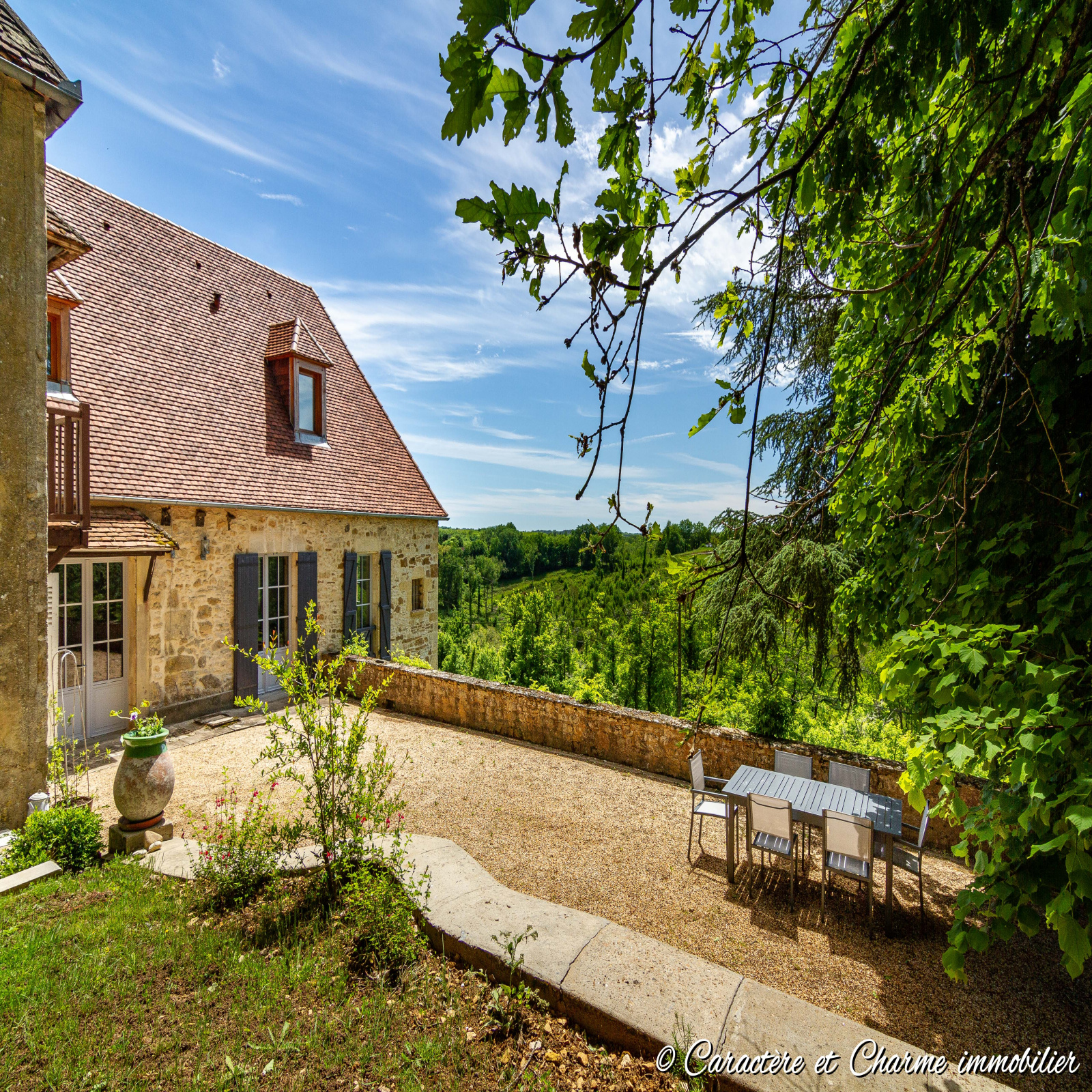 VISITE VIDEO DISPONIBLE. Proche Carlux: Superbe propriété en pierre, pour partie restaurée, offrant un cachet unique et un potentiel très important,et également une vue panoramique somptueuse, le tout dans un parc arboré avec piscine et multiples terrassesabsolument magnifique. Environs 270 m2 actuellement habitables, un grand séjour en pierre apparentes de 80 m2 aveccheminée également en pierre, 2 chambres restaurées, et 2 à finir, une maisonnette pour un projet particulier, et unegrange avec atelier et restauration possible sur 2 étages pour chambres d'hôtes ou gites, ou toutes autre activité au choixnécessitant un peu de place. Une tour du 14ème siècle vient compléter ce cadre idilique donnant à l'espace piscine uncharme intemporel et inimitable. Le terrain represente 3,5 hectares, dont une bonne partie de bois, et 2 parcelles nonattenantes. Il y a dans ce lieu indéniablement paix et sérénité.... difficile de ne pas s'imaginer y rester une fois la visiteterminée... Sarlat à 20 mn, l'autoroute à 15 mn, l'aéroport à 30 mn.