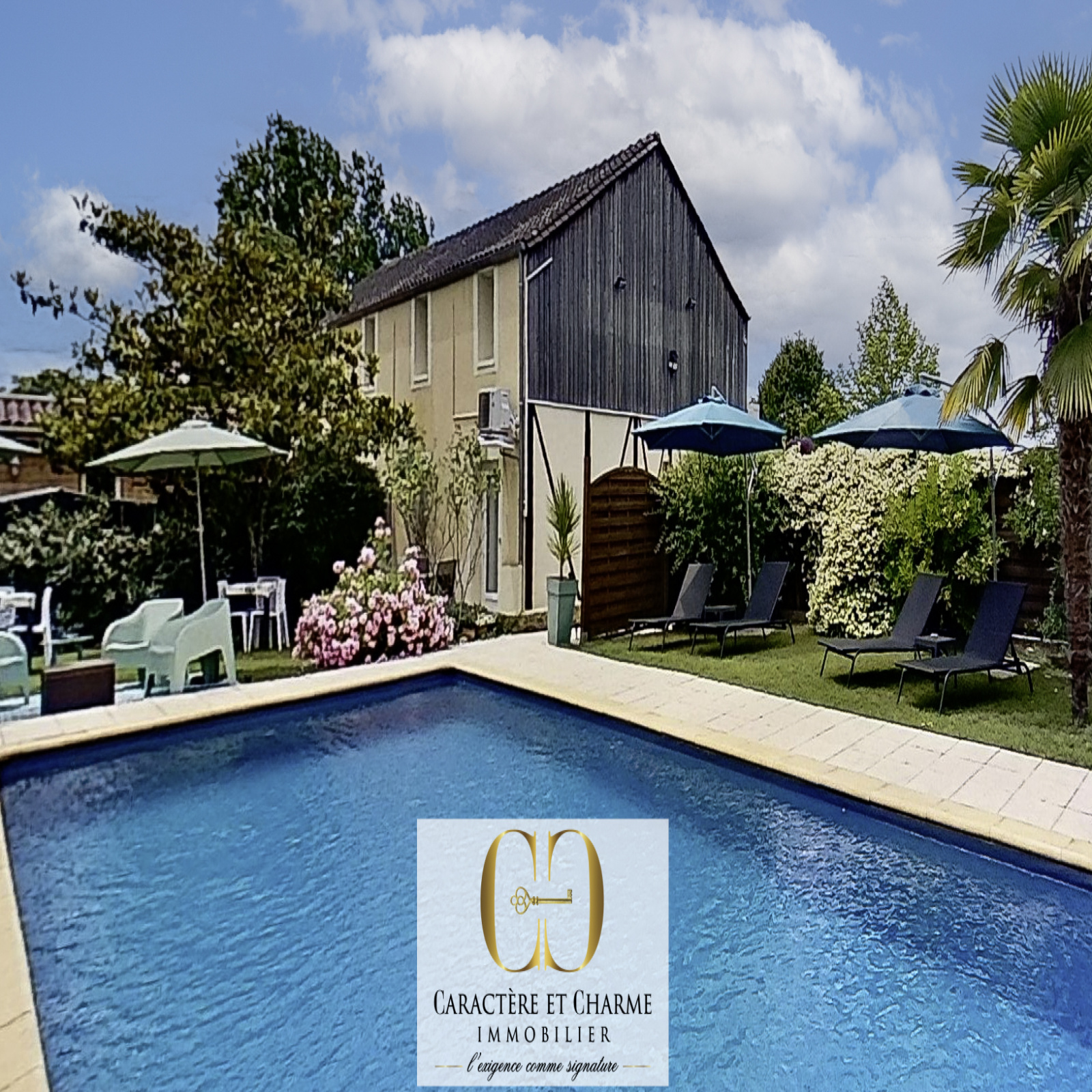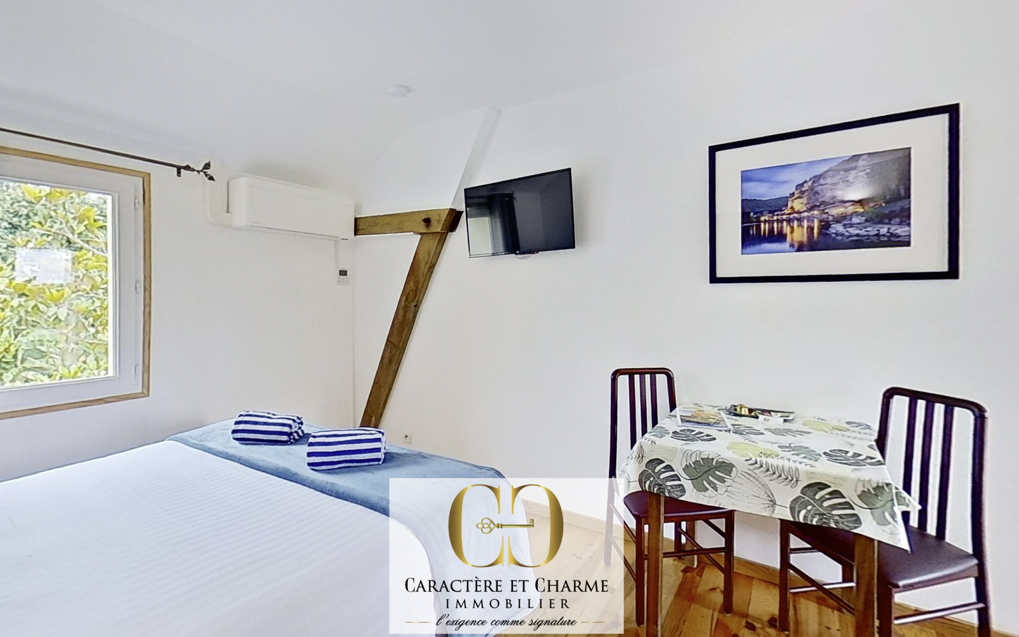 Sarlat. Idéal activité. Bien unique sur le marché, particulièrement bien pensé et réalisé. Cette maison est divisée en un logement principal refait à neuf de 120 m2, très agréable et très cosy, en rez-de-jardin, ainsi que de 7 studios ou chambres d'hôtes indépendants, totalement restaurés et prêts à être loués (2 en rez-de-chaussée et 5 à l'étage avec accès extérieur et terrasse panoramique sur Sarlat). L'ensemble de la propriété offre un jardin intimiste, préservant calme et détente, avec terrasse extérieure, espaces engazonnés et piscine chauffée. Un lieu remarquable par sa qualité et son potentiel d'activité très intéressant, car chaque studio est équipé et donc totalement indépendant, notamment pour les petits-déjeuners (chiffre d'affaire: 82.000 euros sur 6 mois. Résultat: 50.000 Euros). Très qualitatifs, ceux-ci permettent l'accès à Sarlat à pied, et un confort parfait, pour quelques jours ou la semaine. Le logement principal est quant à lui restauré en totalité très récemment et offre d'excellentes prestations. De larges espaces de vie, une baie vivrée avec accès terrasse et jardin privatif avec cuisine d'été. Une grande chambre parentale, et une seconde possible, utilisée actuellement en rangement, et une cuisine professionnelle amenant un esprit "loft industriel" du plus bel effet. Une qualité de vie, agrémentée d'une belle rentabilité et d'une gestion simple, font de ce bien un produit complet, parfait pour 1 ou 2 personnes, dans une ambiance moderne mais reposante, à l'intérieur comme à l'extérieur. Une oasis en plein Sarlat, ou la vie personnelle et le travail s'harmonisent idéalement. Ce lieu est parfait pour changer de vie, ou pour utiliser l'ensemble en location. (Vendu meublé pour la partie "activité"). Parking extérieur privé de 11 places.