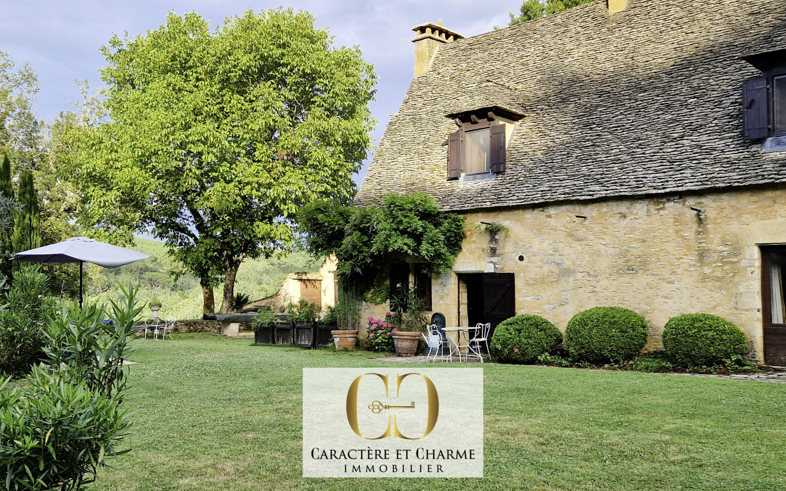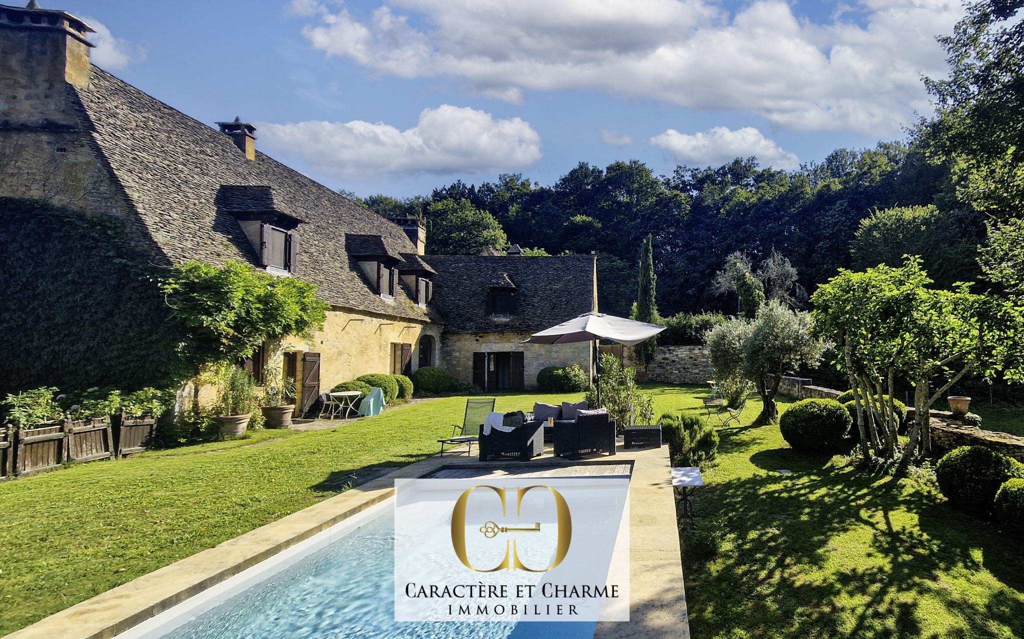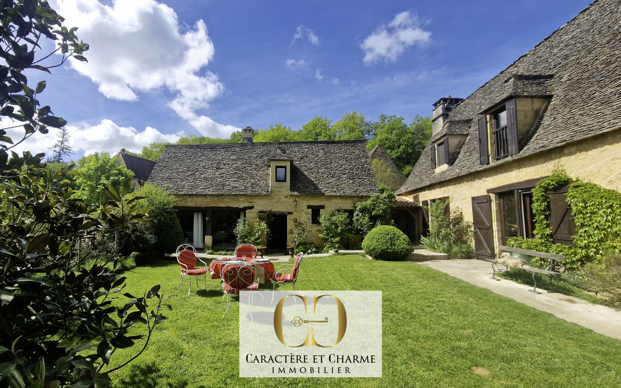 A proximité immédiate de Sarlat. Certains lieux traversent le temps, en réussissant à en conserver le meilleur. Cachet et authenticité d'antan, charme et élégance, calme et sérénité. C'est le cas ici, dans une propriété remaniée au XVIIe siècle, et qui fut en son temps, la résidence d'été des évêques de Sarlat. Agrémentée des prestations permettant un confort plus contemporain, elle a conservé ses atouts, intérieurs et extérieurs, qui font tout son caractère, son histoire, et son ambiance inimitable. Cheminées, poutres, éviers en pierre, sols en terre cuite, toiture en lauze, lucarnes capucines, volets intérieurs bois, dépendances, murets et escaliers en pierre... La végétation elle aussi, du plus bel effet, se plaît à poser une empreinte en totale harmonie, apportant une touche propre à magnifier les lieux plus encore.