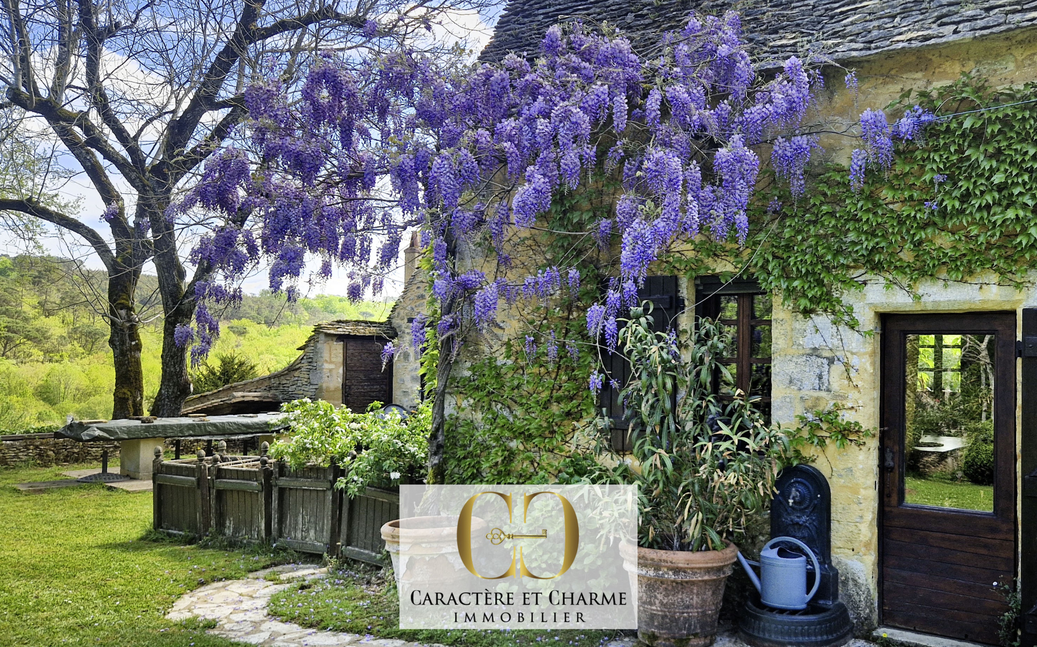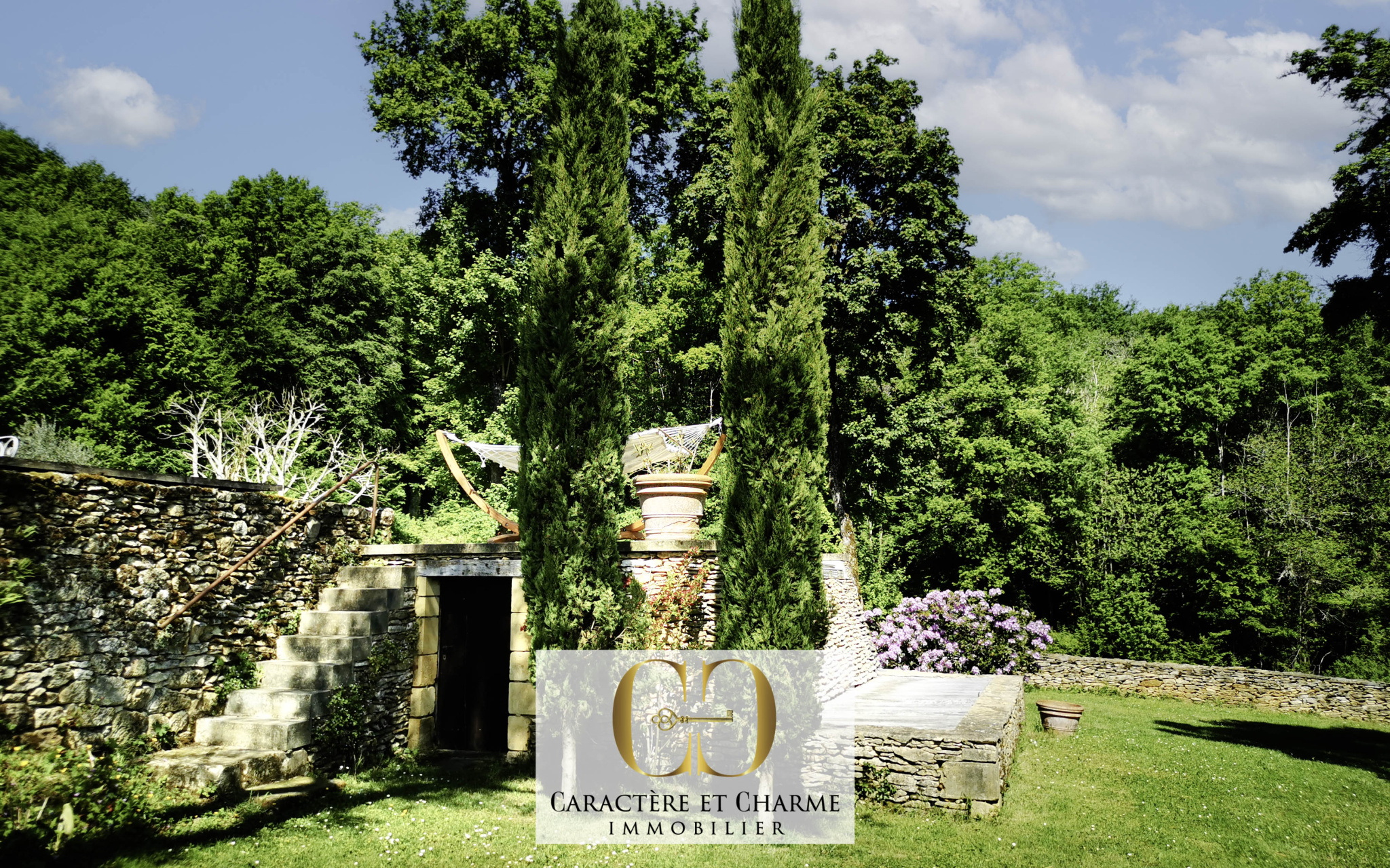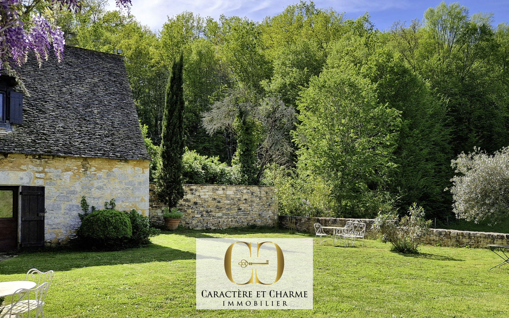 Une maison d'amis donnant elle-même sur la cour d'entrée arborée, particulièrement agréable également permet soit une location touristique et un revenu, pour un total de 4 couchages, soit un espace de réception de la famille et des amis, ou bien encore un bureau ou un atelier d'artiste, pour un calme et une inspiration idéale. Les autres dépendances, grenier, garage, chaufferie, et autres rangements, confèrent au lieu cet esprit de charme, avec la pierre et la lauze, décorées de vignes vierges et autres plantations en contraste des pierres jaunes traditionnelles et réputées de Sarlat. Les bâtiments se placent idéalement pour une intimité et une respiration parfaite, avec suffisamment d'espaces extérieurs autour d'eux pour profiter de la nature, de la vue, et de multiples terrasses ensoleillées selon les heures de la journée, mais sachant aussi, qu'une grande partie des 5,9 hectares est constituée de bois où règnent balades, sentiers et champignons.