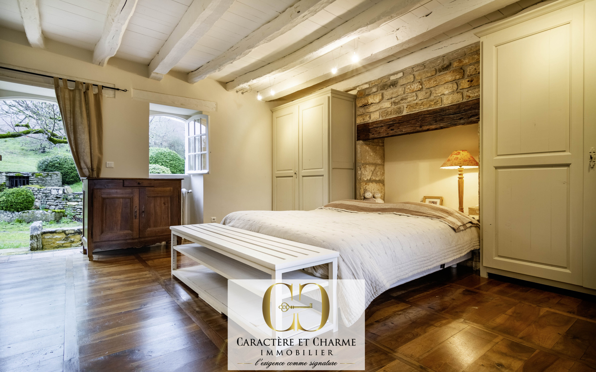 Proche Rocamadour. Carlucet. Propriété en pierre typique du Lot sur 8 hectares, récemment restaurée et offrant un très beau potentiel . Une habitation de 200 m2 avec des prestations et matériaux haut de gamme, respectant l'authenticité du lieu et sa prestance naturelle. Un espace de vie de plus de 66 m2 avec terrasse à l'avant et à l'arrière et cuisine ouverte, escalier moderne et déco, coin salon avec insert, chambre parentale avec sa salle d'eau, et grand espace au premier étage potentiellement cloisonable pour une organisation plus personnelle et un ajout de chambres supplémentaires très facilement. Une autre grande chambre à l'étage, sur un plateau ouvert identique à la grande pièce à vivre, offrant donc également un bel espace à aménager selon vos besoins. Un grand sous-sol / buanderie complète cet espace habitable ou le confort et l'ambiance de grande qualité prédominent. A l'extérieur, un pigeonnier aménagé ( chambre et salle d'eau ) ravira amis, enfants, ou vacanciers, pour son coté indépendant et atypique. Un four à pain avec toit en lauze, véritable pièce pour des moments conviviaux partagés. Une grange à finir de restaurer ( potentiel de 70 m2 - gite, salle de jeu....), et un hangar style séchoir à tabac de 100 m2 organisé en atelier, garage, et équipé de 2 box pour chevaux. Une piscine au sel, neuve, complète ce lieu splendide qui attirera les amoureux des belles propriétés, et permettra à chacun de la faire vivre avec son propre projet tant les possibilités sont nombreuses.
