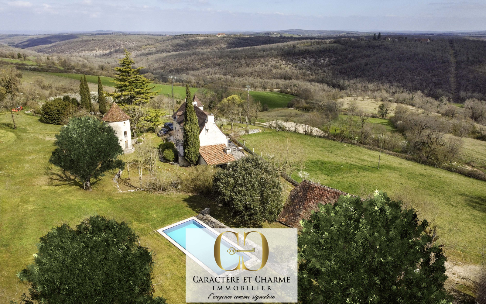 Proche Rocamadour. Carlucet. Propriété en pierre typique du Lot sur 8 hectares, récemment restaurée et offrant un très beau potentiel . Une habitation de 200 m2 avec des prestations et matériaux haut de gamme, respectant l'authenticité du lieu et sa prestance naturelle. Un espace de vie de plus de 66 m2 avec terrasse à l'avant et à l'arrière et cuisine ouverte, escalier moderne et déco, coin salon avec insert, chambre parentale avec sa salle d'eau, et grand espace au premier étage potentiellement cloisonable pour une organisation plus personnelle et un ajout de chambres supplémentaires très facilement. Une autre grande chambre à l'étage, sur un plateau ouvert identique à la grande pièce à vivre, offrant donc également un bel espace à aménager selon vos besoins. Un grand sous-sol / buanderie complète cet espace habitable ou le confort et l'ambiance de grande qualité prédominent. A l'extérieur, un pigeonnier aménagé ( chambre et salle d'eau ) ravira amis, enfants, ou vacanciers, pour son coté indépendant et atypique. Un four à pain avec toit en lauze, véritable pièce pour des moments conviviaux partagés. Une grange à finir de restaurer ( potentiel de 70 m2 - gite, salle de jeu....), et un hangar style séchoir à tabac de 100 m2 organisé en atelier, garage, et équipé de 2 box pour chevaux. Une piscine au sel, neuve, complète ce lieu splendide qui attirera les amoureux des belles propriétés, et permettra à chacun de la faire vivre avec son propre projet tant les possibilités sont nombreuses.