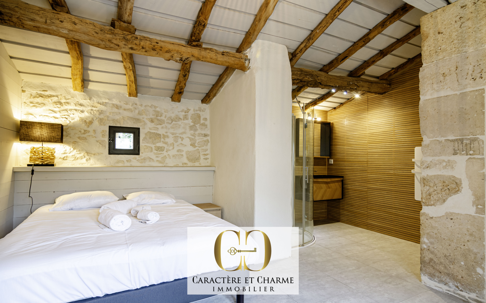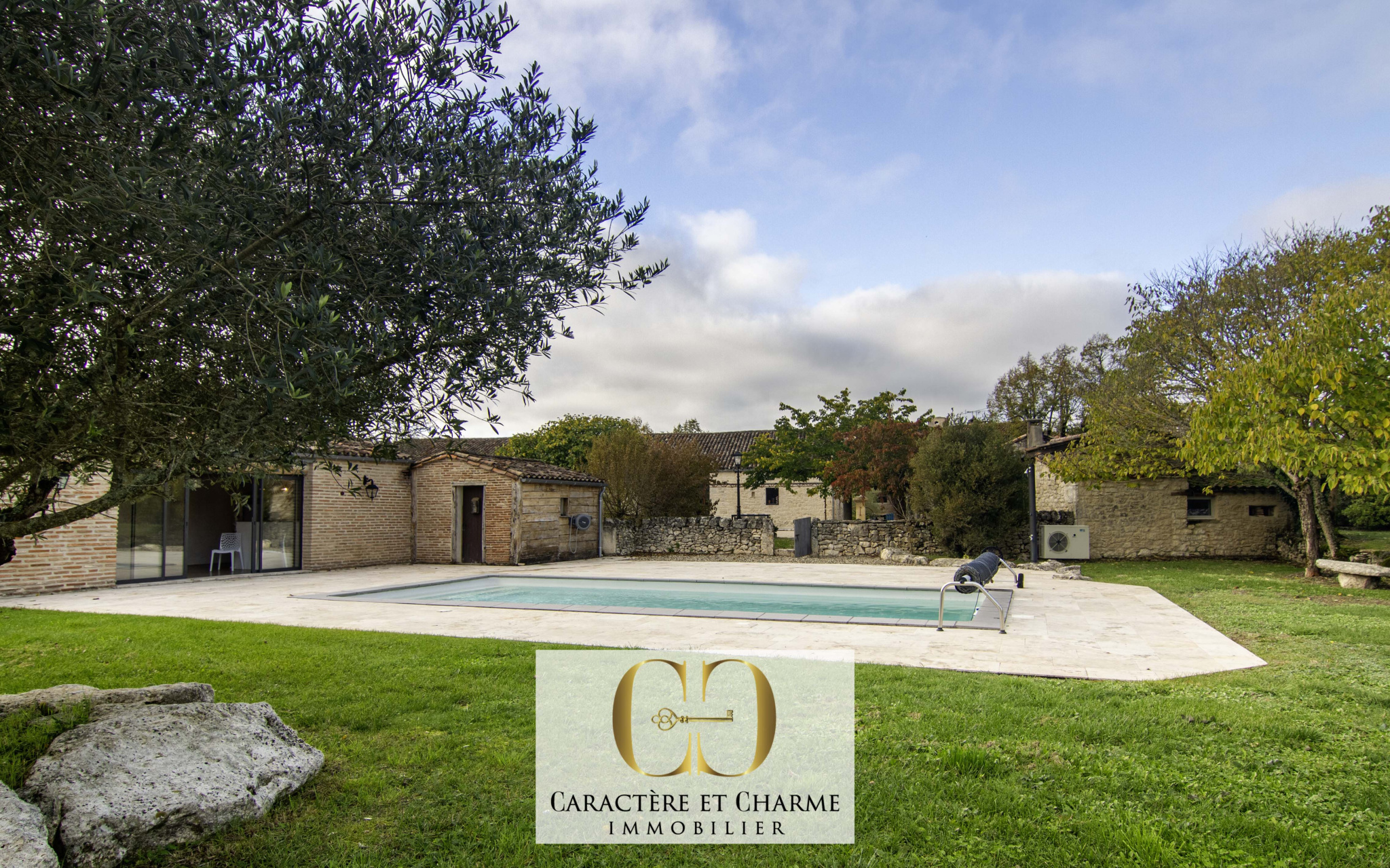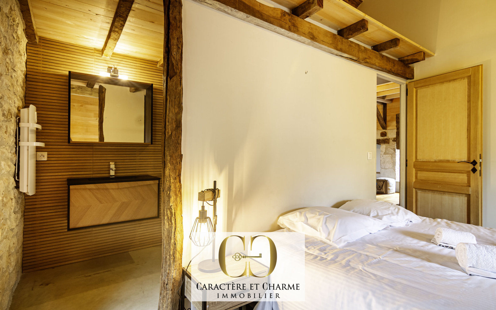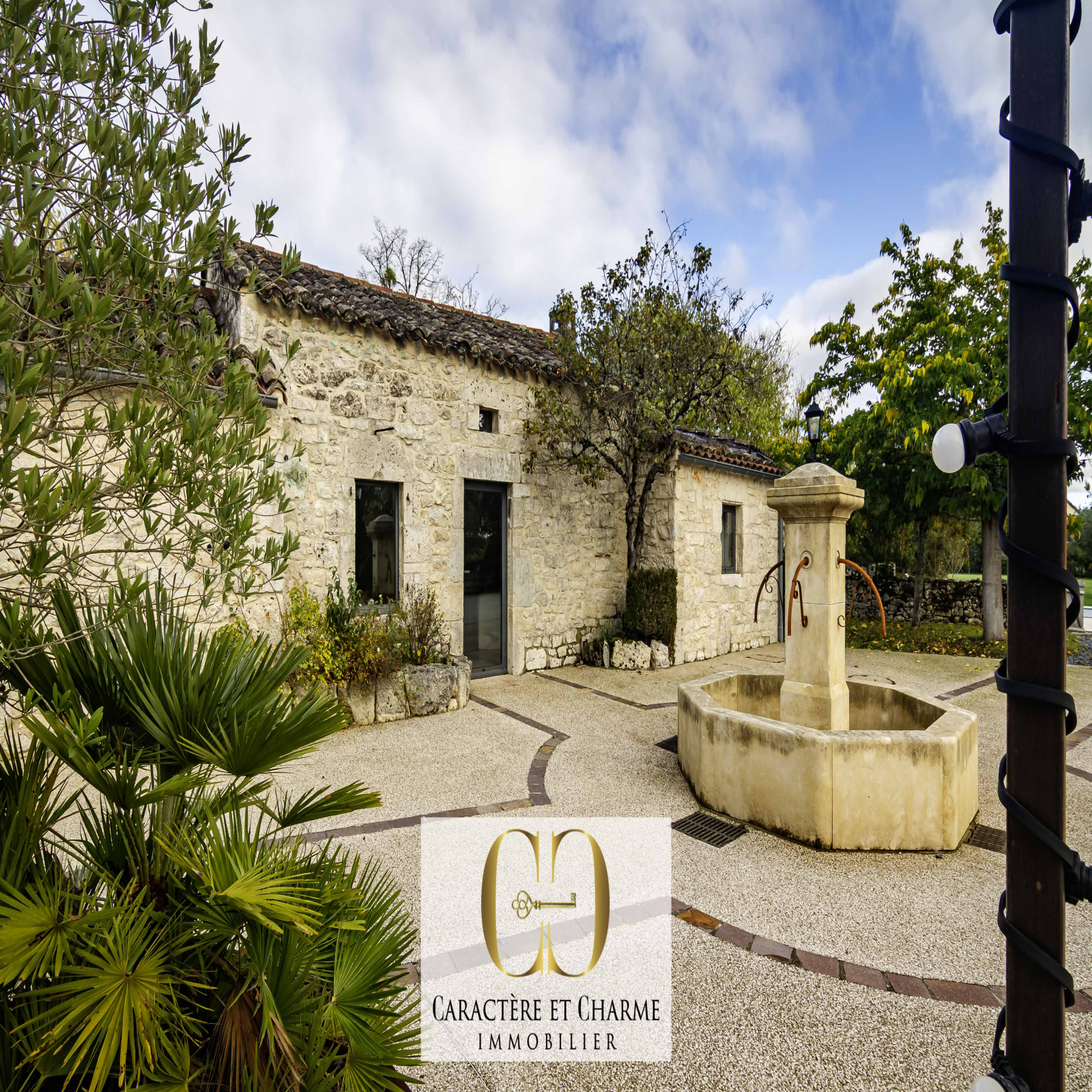 Magnifique Mas composé de 4 maisons en pierre, restaurées en habitation et gîtes haut de gamme sur une surface totale de 565 m2, et 1,87 hectare de terrain. Dans le bâtiment principal, datant de 1823, plus de 300 m2 comprenant une pièces de vie exceptionnelle avec cuisine ouverte salon et salle à manger, cheminée insert, le tout dans une ambiance des plus chaleureuse fait de pierres, de poutres en bois, et d'un aménagement style loft contemporain alliant élégance et matériaux de haute qualité, l'ensemble offrant une parfaite harmonie entre authenticité et modernité, ( béton ciré avec chauffage au sol, baies vitrées alu, escalier acier...). 3 grandes chambres, dont deux "en suite", avec salles d'eau privées, l''une d'elle se situant en rez-de-chaussée. 2 gîtes séparés au coeur de la propriété ( 111 et 100 m2 ), restaurés et aménagés dans l'esprit de la maison principale. Tous deux pouvant accueillir jusqu'à 5 personnes ( 2 chambres et coin couchage supplémentaire). Enfin, une cuisine d'été (ou 3ème gîte) de 42 m2 ( cuisine équipée, espace salon, chambre d'appoint ) complète ce superbe domaine. Les prestations extérieures sont au diapason de la qualité intérieure: béton désactivé et fontaine centrale, parking en bicouche, piscine chauffée 8 X 4 avec terrasse en travertin, prairie plantée de multiples arbres, dont une grande partie d'oliviers. Cette propriété est idéale en maison familiale, ou pour habiter en gérant en même temps ce fort potentiel touristique, mais permet éventuellement l'exploitation totale de la surface en location pour environ 20/25 personnes. L'attrait touristique de la région, avec Cahors à 10 mn, les chemins de Compostelle à 500 mètres, Saint-Cirq-Lapopie à 30 mn, l'aéroport de Toulouse à 1h15, l'autoroute à 5 mn, et les très nombreux sites du lot, donnent à cet ensemle un potentiel incroyable. Un lieu de vie qui sort de l'ordinaire pour des moments privilégiés dans un environnement paisible et de grande qualité.